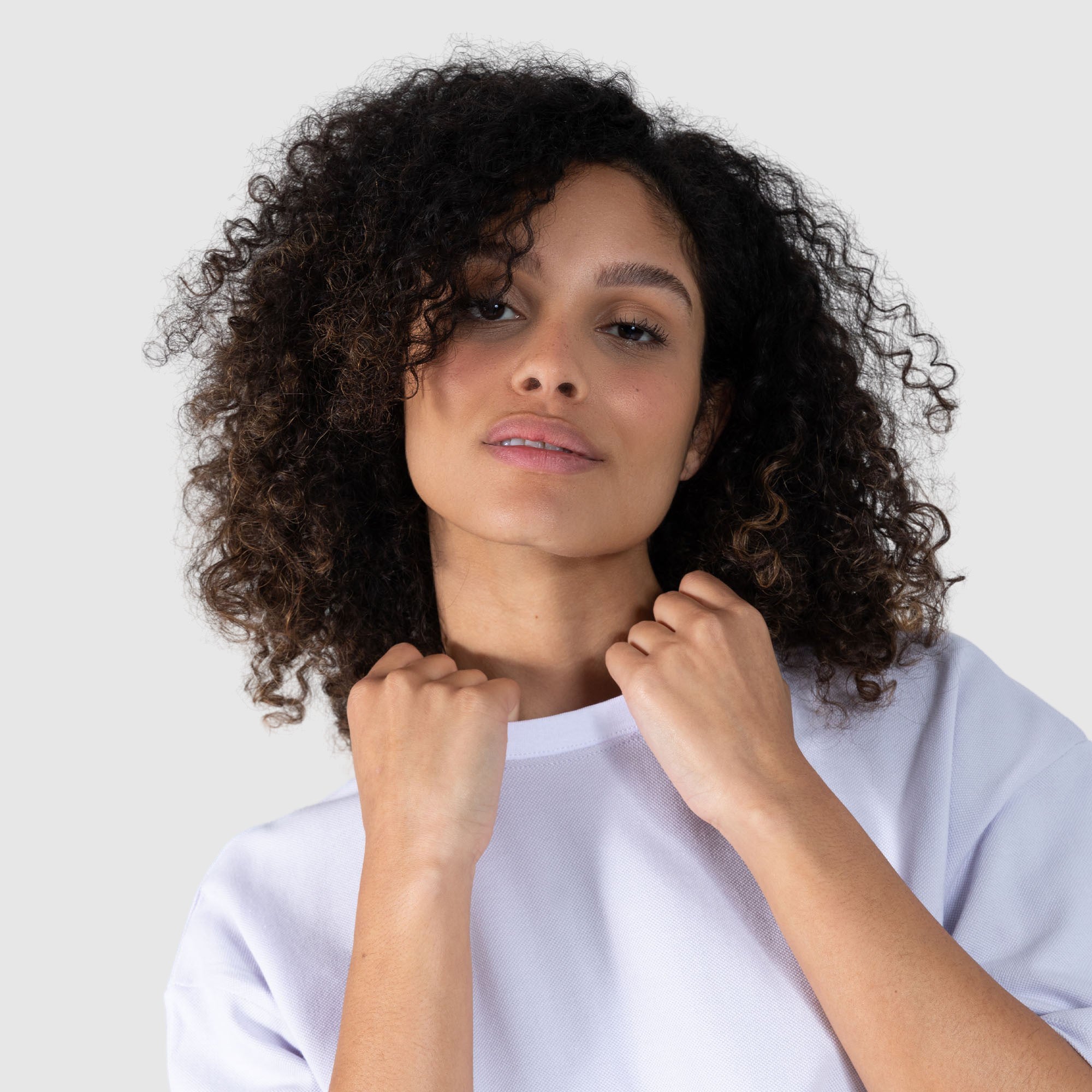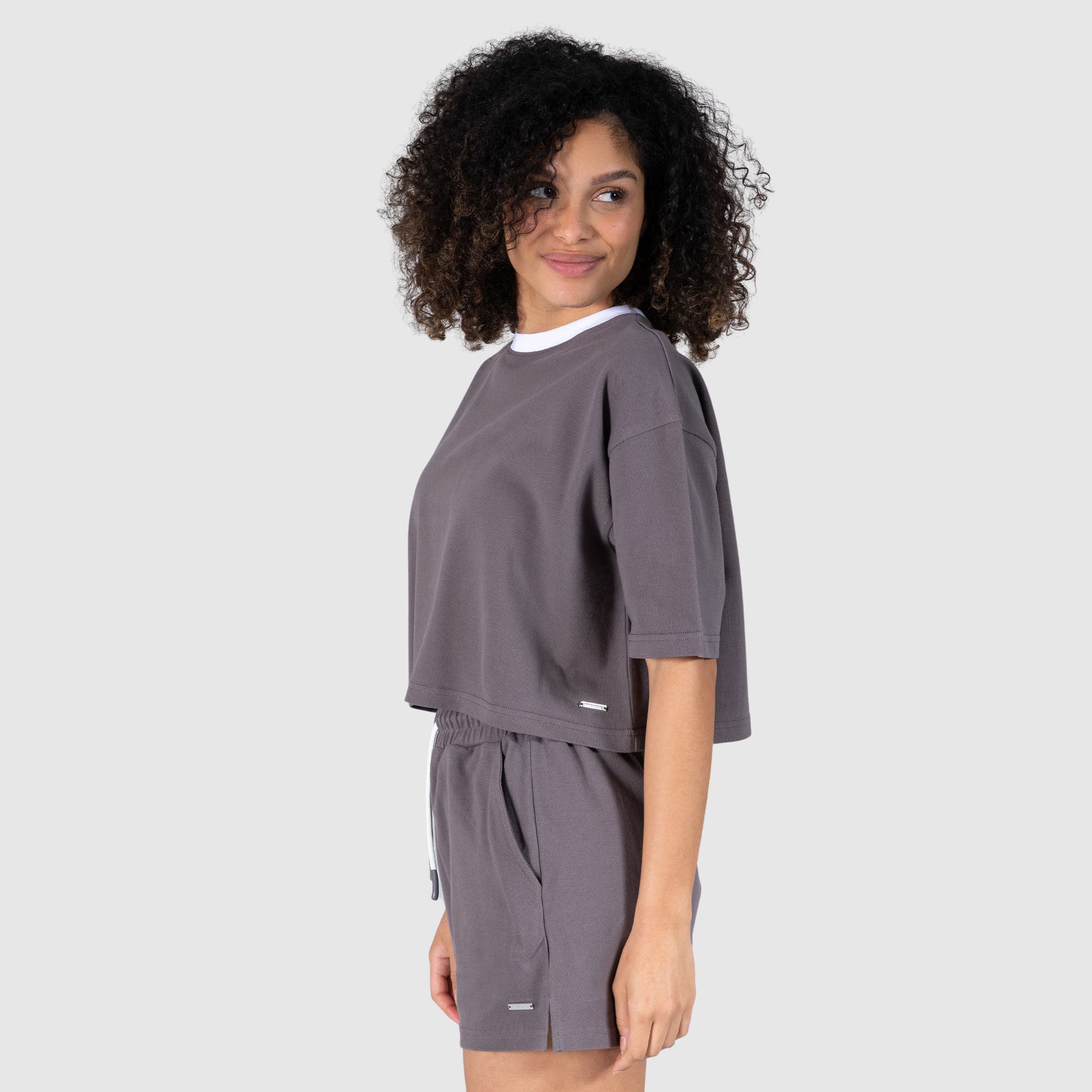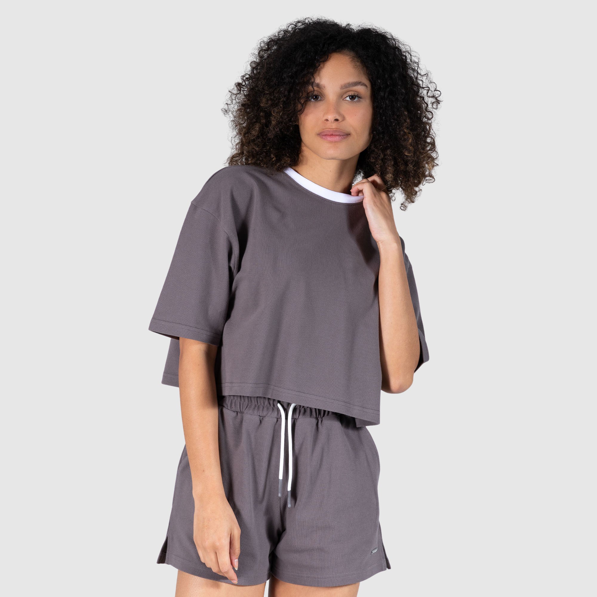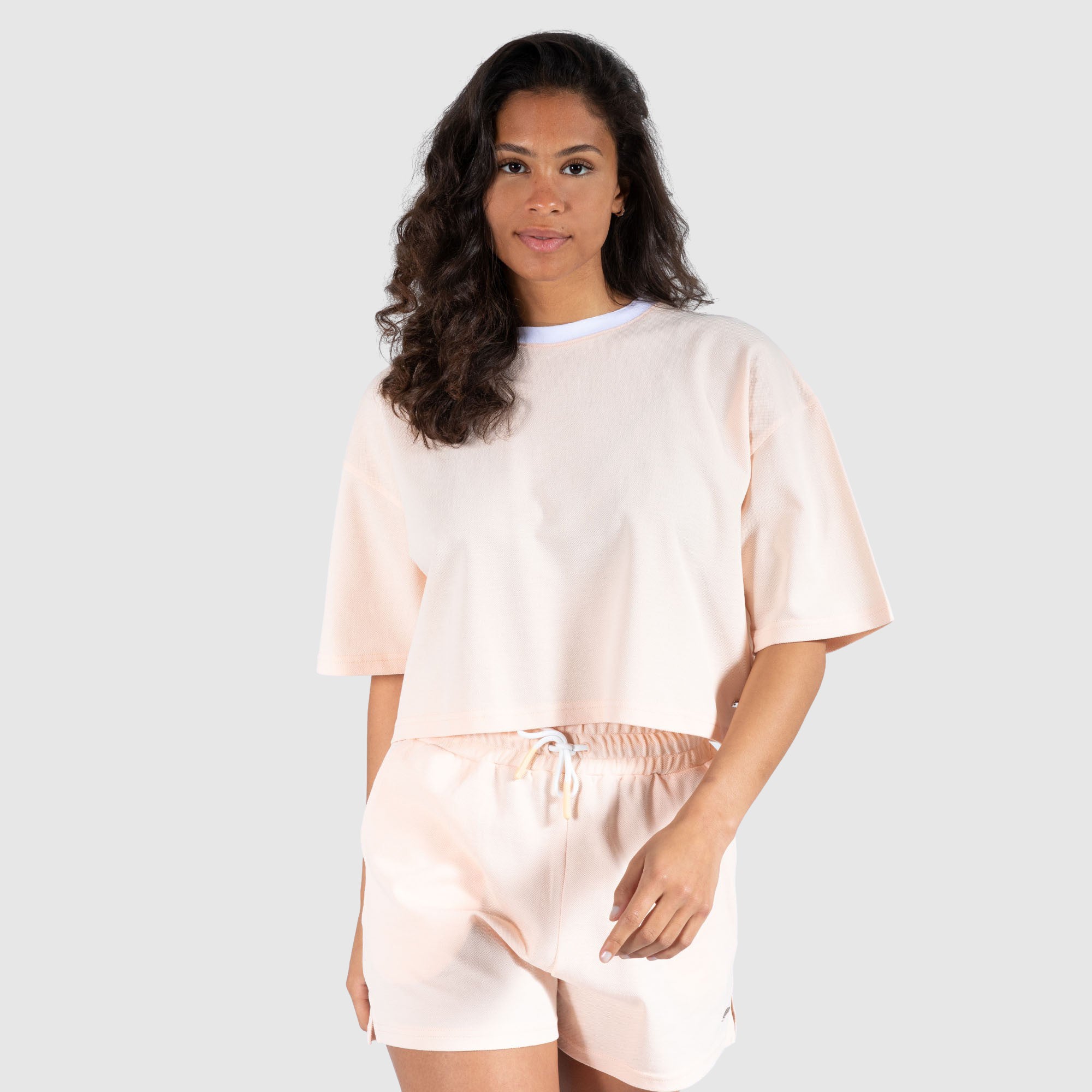 The Halie t-shirt will quickly become a wardrobe staple. The oversized cut in piqué with a contrast collar is flattering and comfortable at the same time. It has an engraved